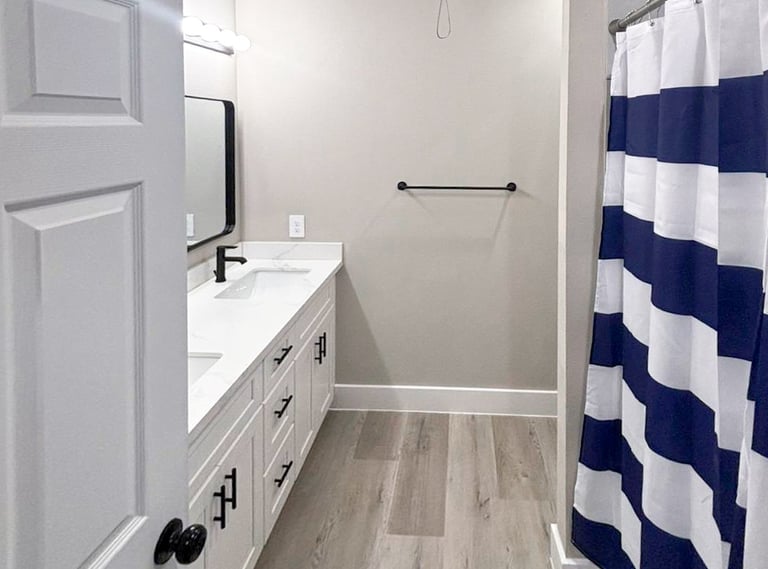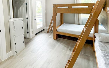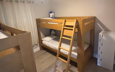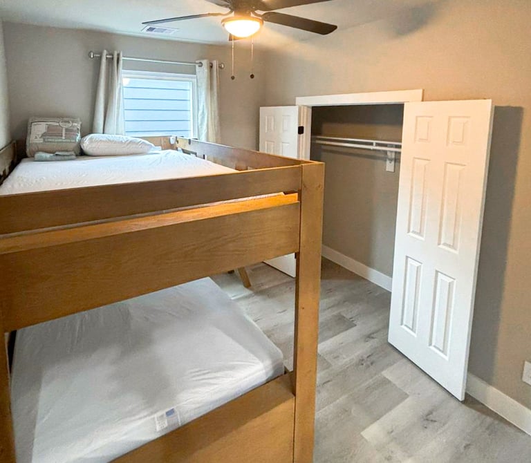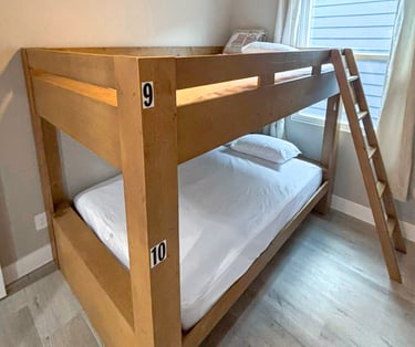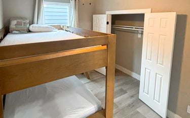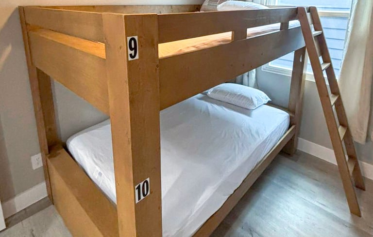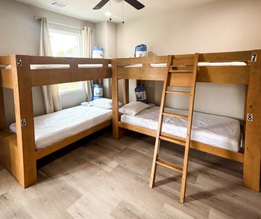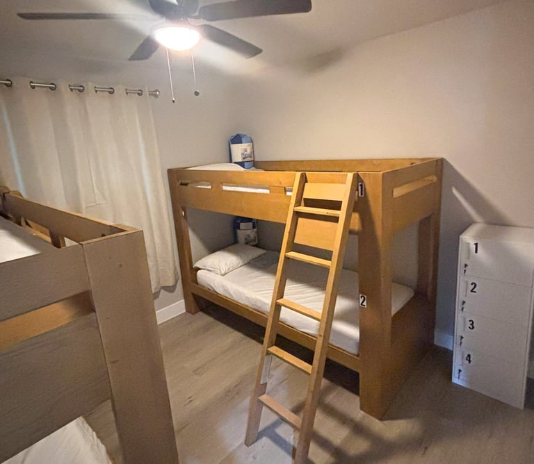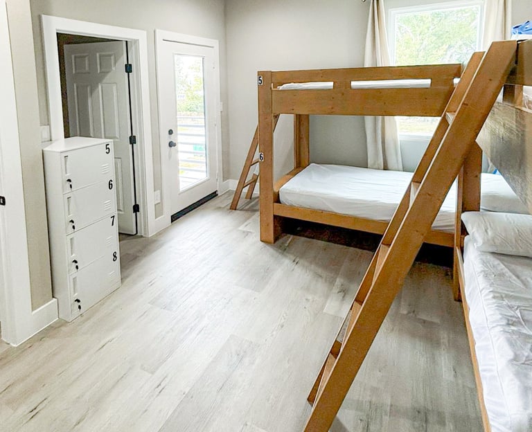 Spacious semi-private suite featuring two full-size bunkbeds and a quiet, restful atmosphere.