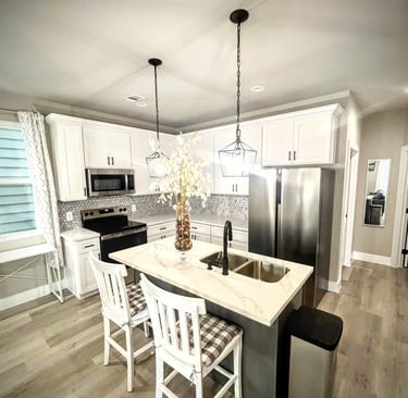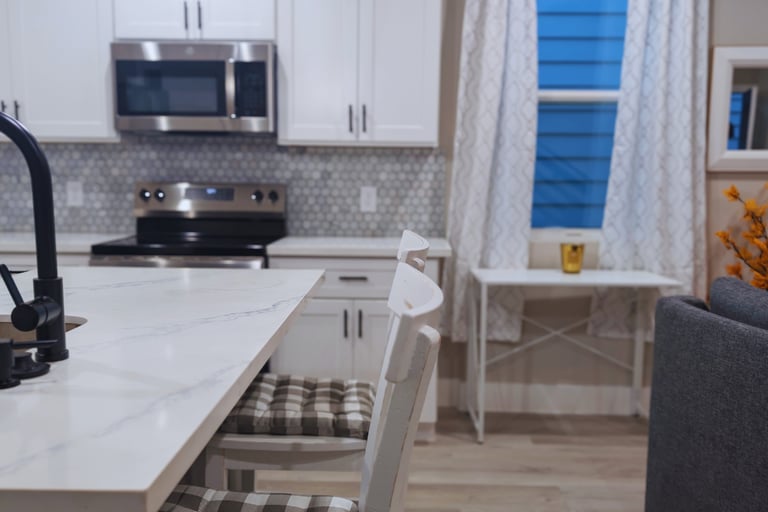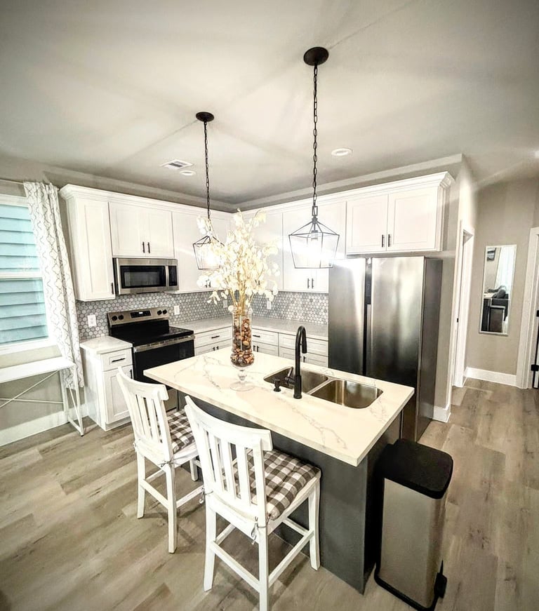 Brand-new everything: appliances, furniture, décor, bedding, and fixtures